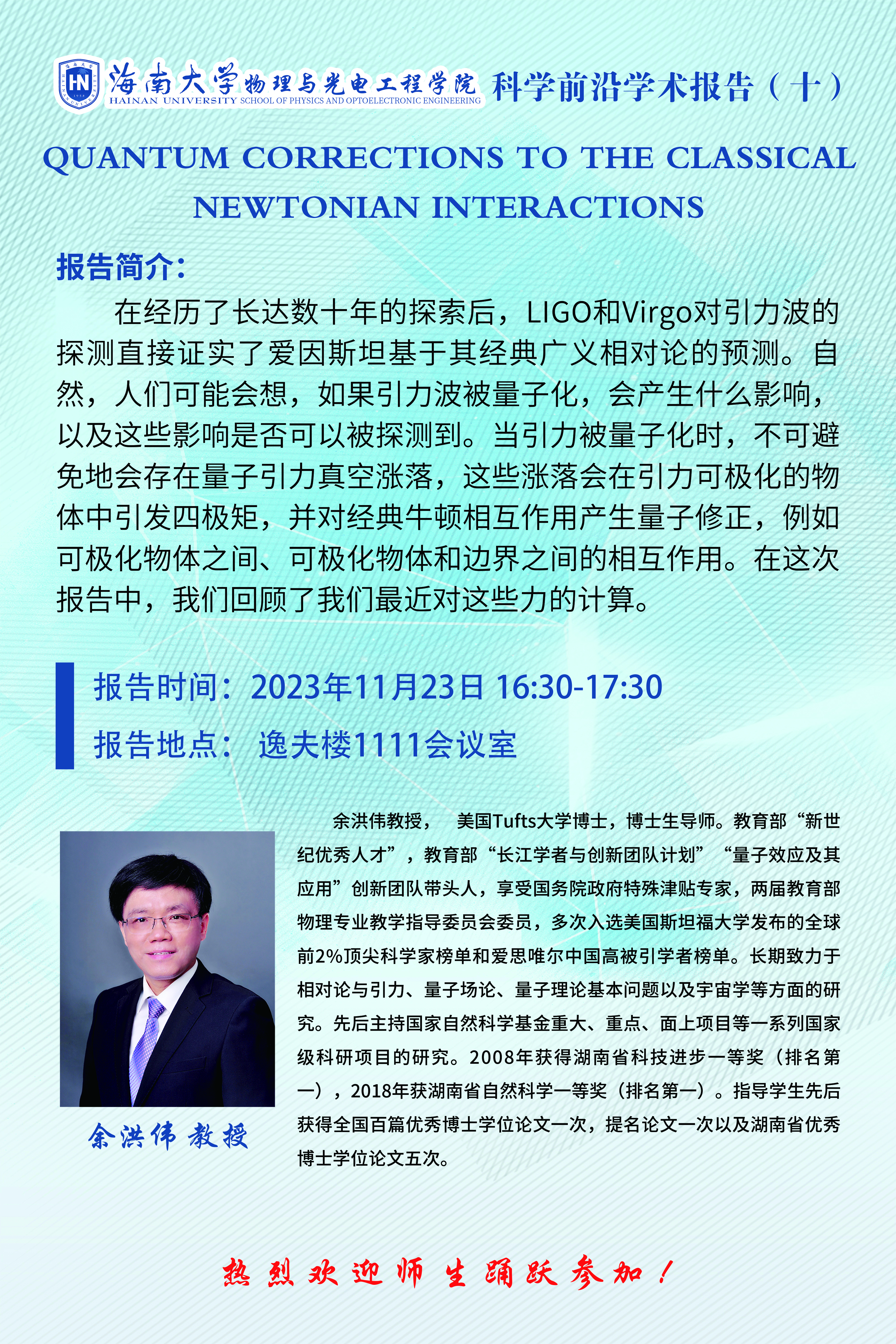 科学前沿学术报告(十):QUANTUM CORRECTIONS TO THE CLASSICAL NEWTONIAN INTERACTIONS