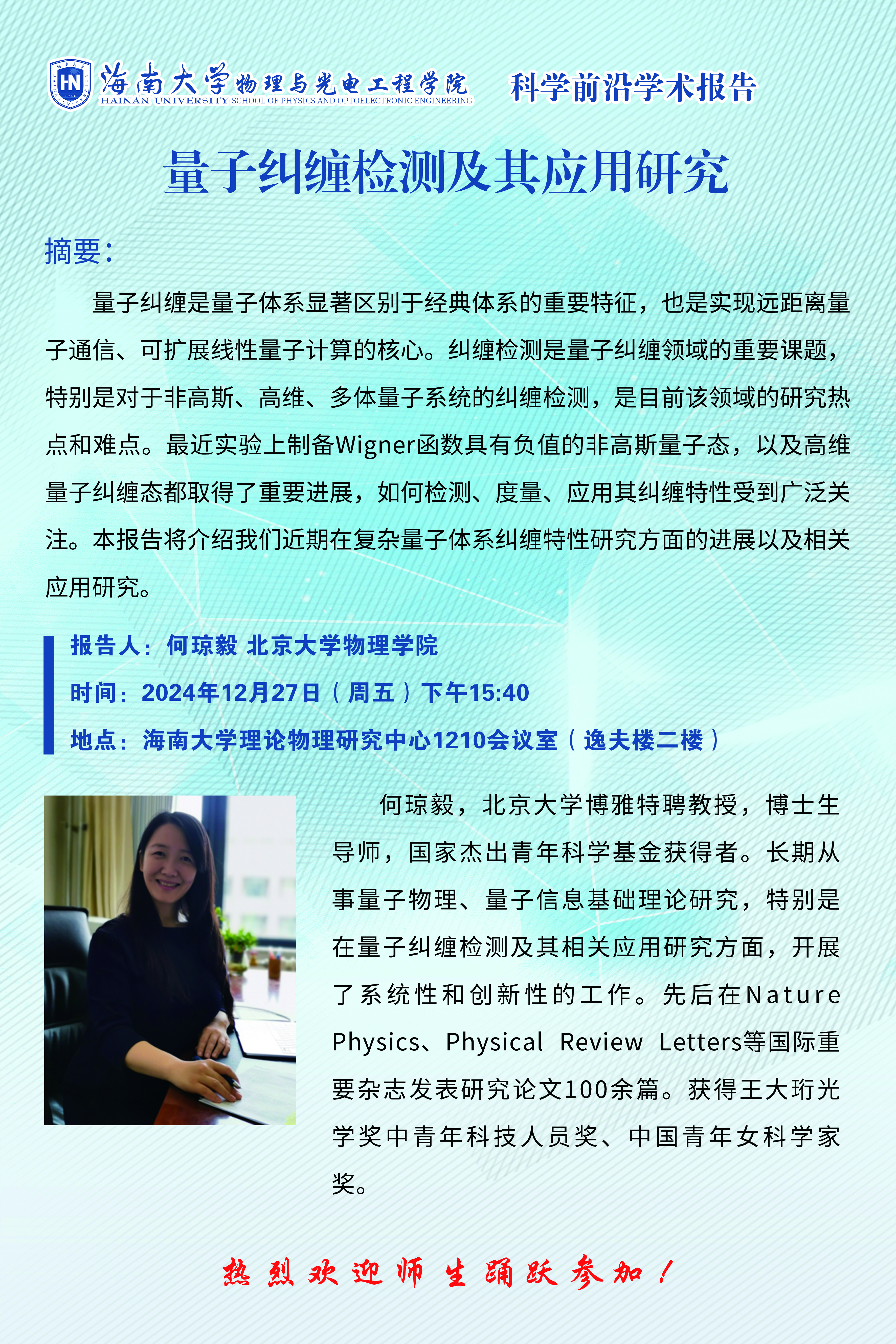 科学前沿学术报告(四十二):量子纠缠检测及其应用研究